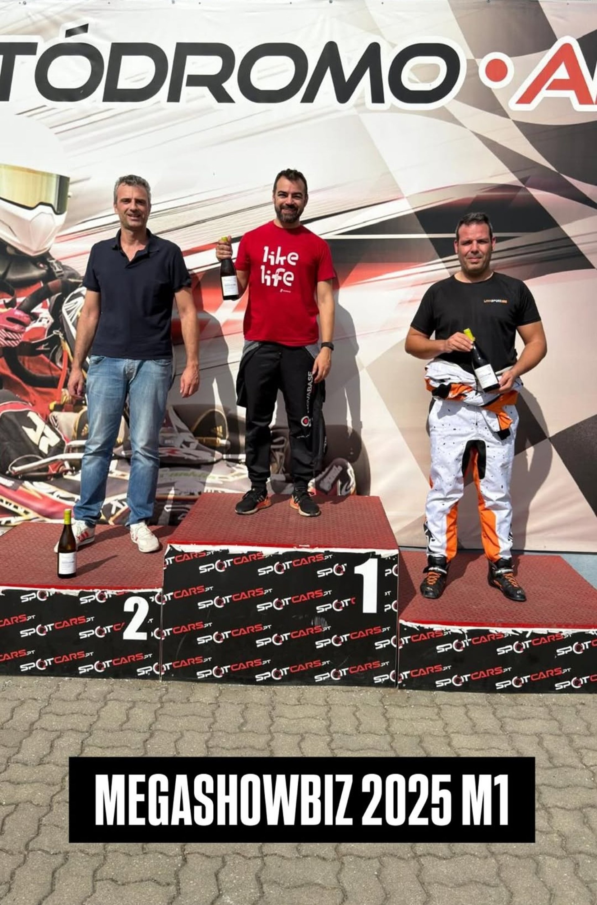 M1 : Sabia que os pneus de todos os karts tinham sido mudados no dia anterior, podiam estar mais equilibrados que o previsto. Era importante fazer uma boa qualificação pois o formato da prova exige andar sempre na frente se se quer pontuar. Entrei em pista na quali nos pilotos da frente do pelotão o que ajudou. Na primeira volta já tinha pista aberta para a frente. Kart com motor não muito forte em reta mas conseguia ter frente. Fiz Q1, na penultima volta com 49:353, pelo tempo obtido sabia que ia arrancar provavelmente nos 3/4 primeiros. Deu para Q1 a 0,080s do segundo, André Branco, com os 5 primeiros a menos de 0,200s. No arranque o André foi mais capaz e ficamos lado a lado, acabei por ceder posição para não comprometer a corrida pois o restante pelotão estava logo atrás, na direita após a reta do fundo. Juntamente com o P3, Bernardo Penaforte, conseguimos distanciar do restante grupo, sempre em linhas sem comprometer posição, embora os 3 sempre à espreita da oportunidade de passar. Estava numa posição ingrata, atento para passar o P1, mas cauteloso que uma manobra menos bem conseguida custava-me o P2. Assim aconteceu na volta 15 e perdi a posição pois houve um ligeiro erro do André na frente, para tentar ganhar posição perdi a linha e consequente P2. Até ao final não deu para recuperar posição, foi uma prova quase sem erros. Consegui inclusive fazer a melhor volta da manga 1 em 49:177s.